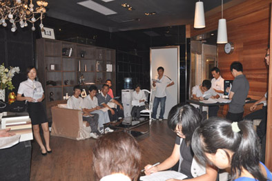 ????? 伴隨著新標終端市場不斷的擴展,企業(yè)規(guī)模的迅速壯大,越來越多致力家居行業(yè)的有志之士加入到新標的隊伍中來。為了使新成員能快速的融入到新標這個團隊中開展工作,新標公司特開辦新員工成長訓練營,對新員工進行專業(yè)知識強化訓練。從學習門窗衣柜基礎知識到深入了解新標企業(yè)文化,新成員在學習中迅速成長。在培訓課程中期階段,公司組織新員工到華南地區(qū)旗艦店之一的廣州馬會家居店進行參觀學習,更直觀的了解品牌操作。新標公司總經理黃東江先生更是親臨馬會店對新入職成員授課。通過授課,使新成員更進一步的認識和了解simbor新標,以及公司規(guī)劃、市場的發(fā)展方向。